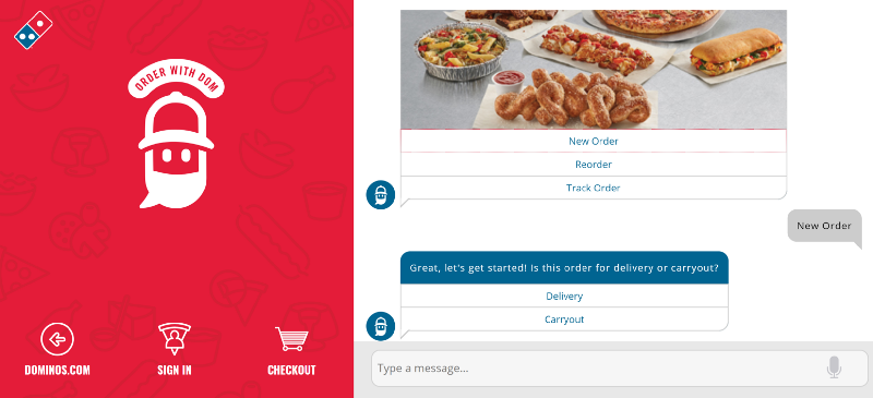 A chat interface could serve to improve the user experience of the latter type of users. The whole ordering process could happen in a single page, with an interface that is familiar to everyone from a tech savvy millennial to your octogenarian grandparents. This is probably why Domino’s has created a chat ordering system as an alternative on their site.
