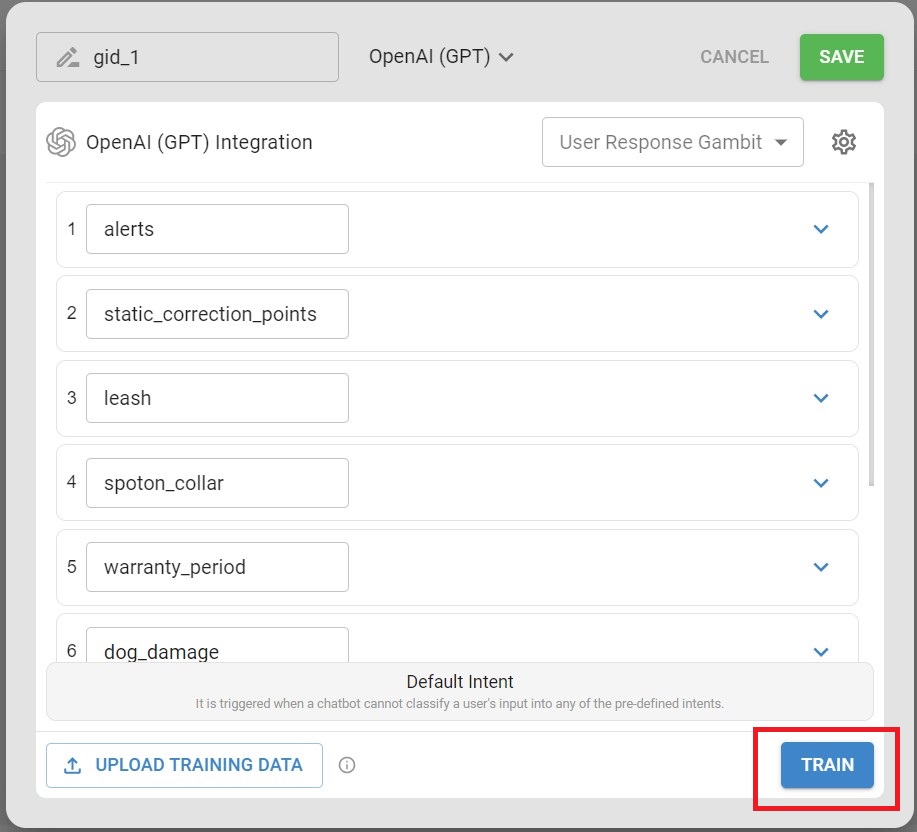 Once you have uploaded the knowledge base, train the AI based chatbot.